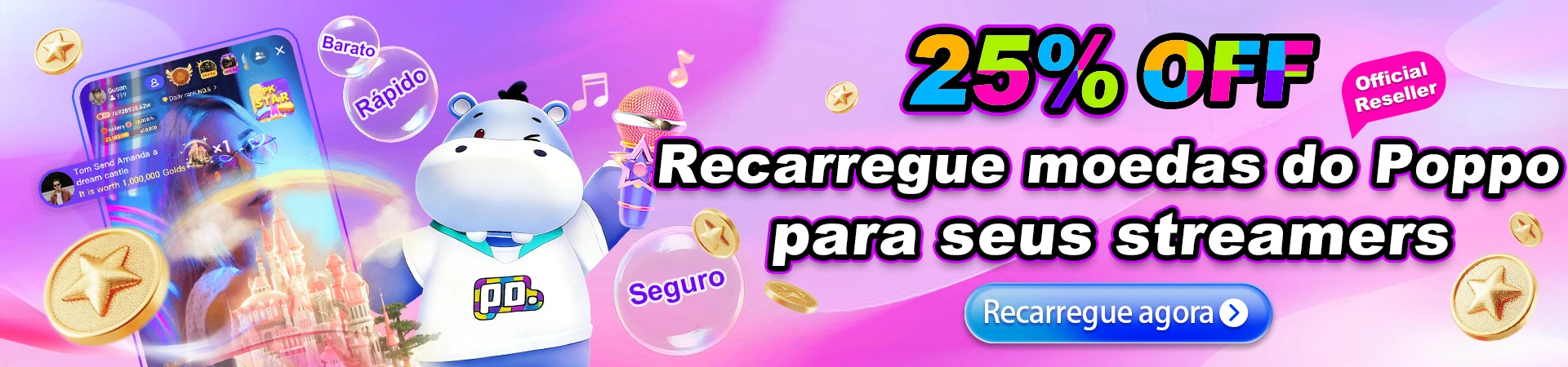 Como revendedor oficial autorizado da POPPO, oferecemos recarga profissional de moedas POPPO Live aos preços mais baixos com recarga automática através do ID POPPO.
